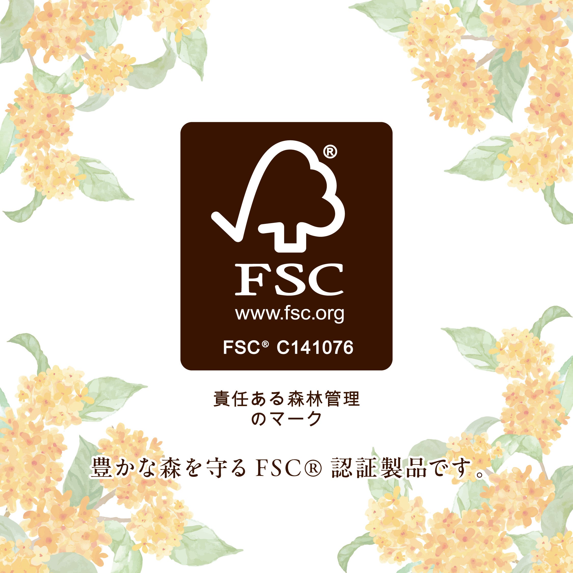 このトイレットペーパーはFSC®認証製品です。この製品は、適切に管理されたFSC®認証林からの原材料および再生資源から作られています。FSC®︎認証製品をお使いいただくことで、豊かな森を守ることに繋がります。