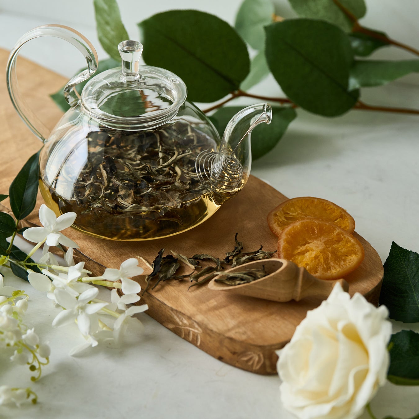 ジャスミンやローズを中心としたフローラルな紅茶の香りに、やわらかな甘さと、ベルガモットやレモンリーフを思わせるフレッシュなグリーンのアクセントを加えた、親しみやすく心地よいホワイトティーの香りです。